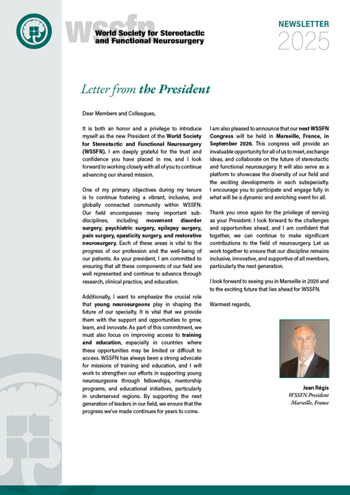 • Letter from XX World Congress of Stereotactic and Functional NeurosurgeryWSSFN 2024